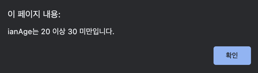 alert('ianAge는 20 이상 30 미만입니다.');