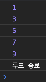console.log('루프 종료'); // 루프가 끝나면 실행된다