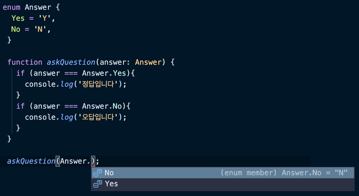 이넘은 구체적인 값을 제안해줌으로써 이넘에서 제공되는 값만 넘겨 좀 더 정확한 코드, 예외처리 케이스가 줄어들 수 있다.