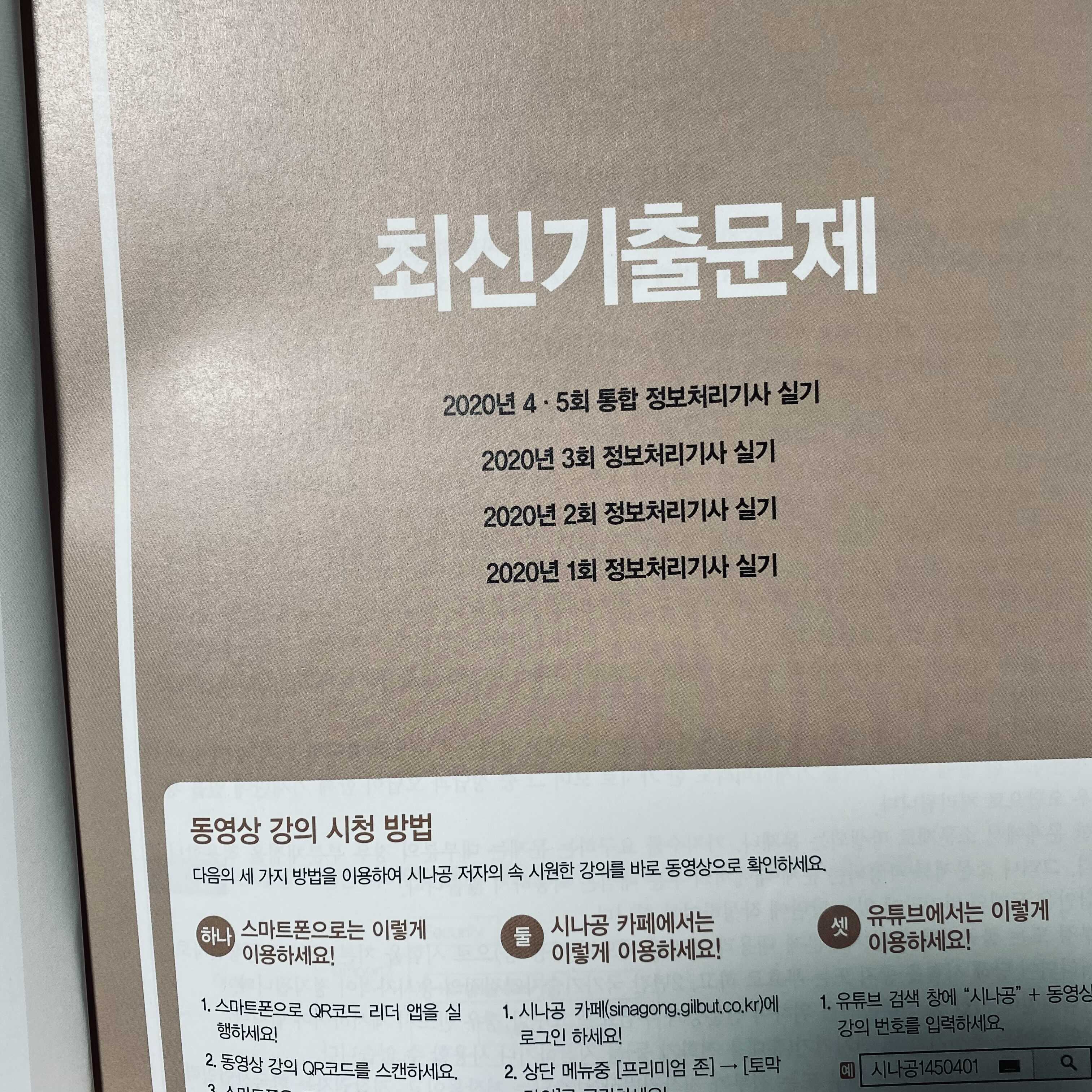 작년 정보처리기사독학은 시나공 정보처리기사 필기책과 함께해 합격했었다.