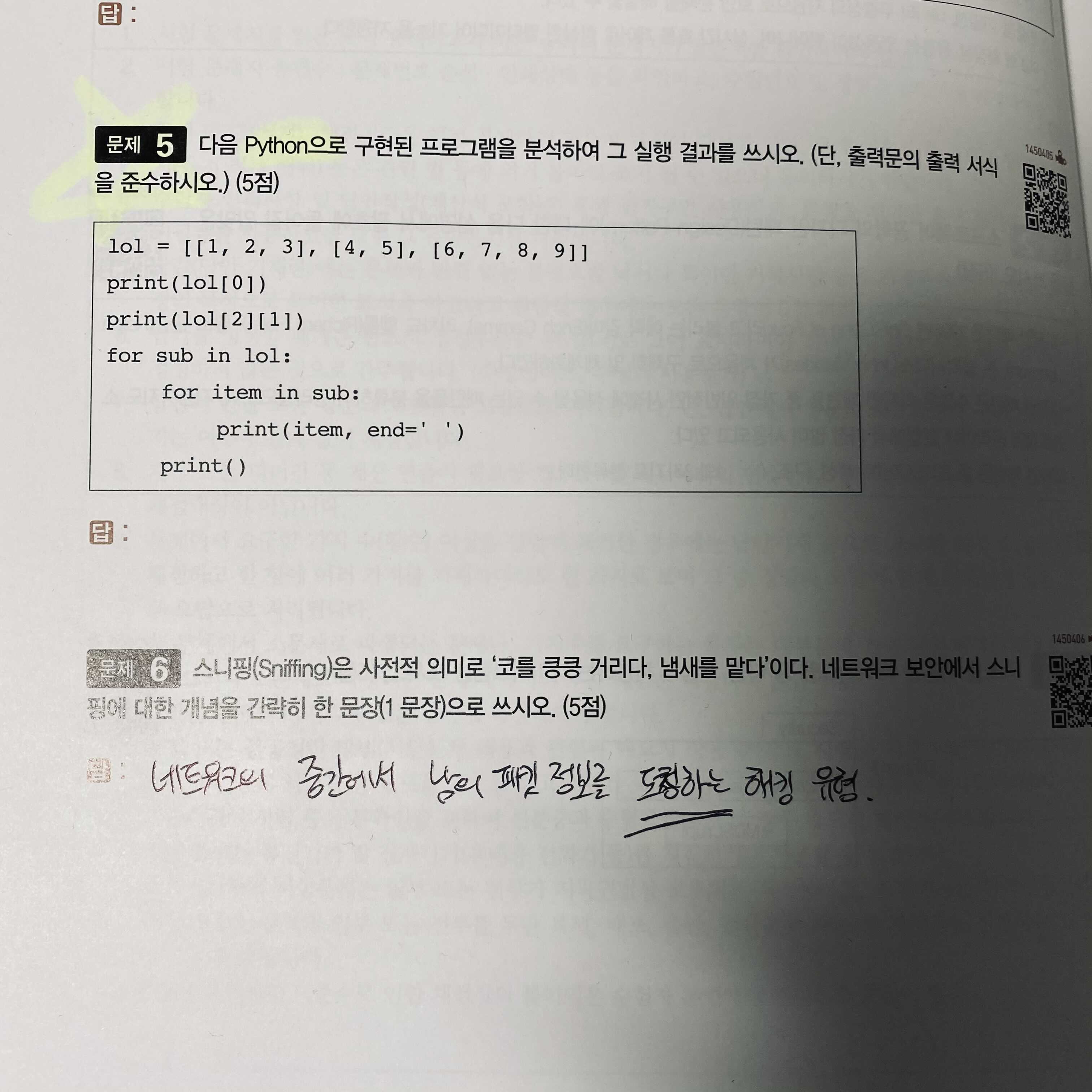 시나공정처기 책의 특장점인 QR코드 유튜브 강의는 기출문제에도 문제마다 달려 있어서