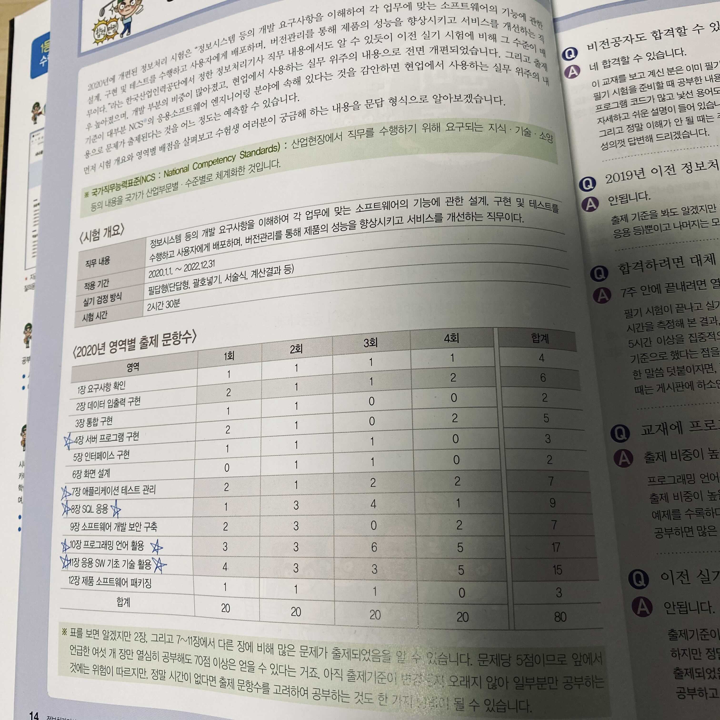 정보처리기사준비를 위해서 가장 중요한 것은 역시 책 초반에 적혀있는 대로 작년 출제 문항수와 어떤 영역에서 출제되었는지 확인하고 그에 맞게 대비하는 것이 가장 효율적일 것이다.