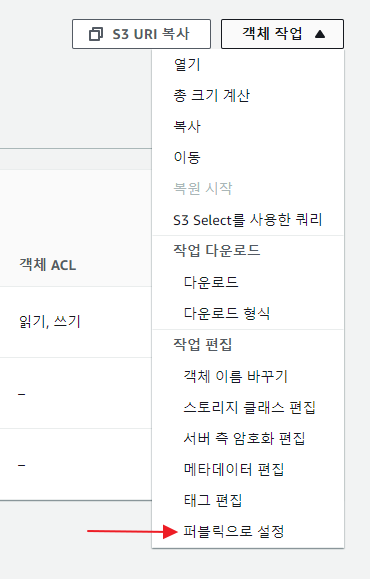 - 퍼블릭으로 설정 기능도 ACL을 이용해서 권한을 제어한 것이다.