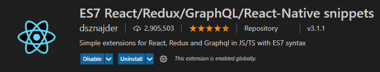 리액트의 rfce 단축키 사용을 위해 extensions에서 ES7 snippets 설치