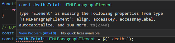 const deathsTotal = $('.deaths') as HTMLParagraphElement;