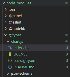 tsconfig.json에 typeRoots라는 속성을 이용해 기본적으로 node_modules밑의 @types 해석을 하거나 임의로 정의할 수도 있다. 프로젝트 폴더에서 임의로 정의한 types/chart.js 폴더를 생성한다음 index.d.ts를 만든다.