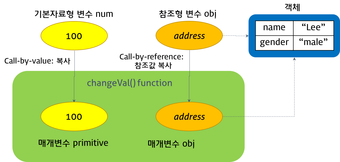 // 매개변수 prmitive는 원시 값을 전달받고, 매개변수 obj는 객체를 전달받는다