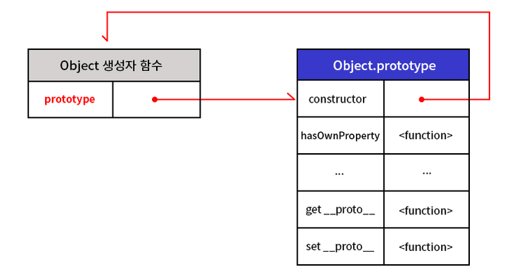 - 모든 객체가 가지고 있는(엄밀히 말하면 Object.prototype으로부터 상속받은) __proto__ 접근자 프로퍼티와 함수 객체만이 가지고 있는 prototype 프로퍼티는 결국 동일한 프로토타입을 가리킨다. __proto__ 접근자 프로퍼티는 모든 객체가 사용 주체이며 prototype 프로퍼티는 생성자 함수가 사용 주체이다.