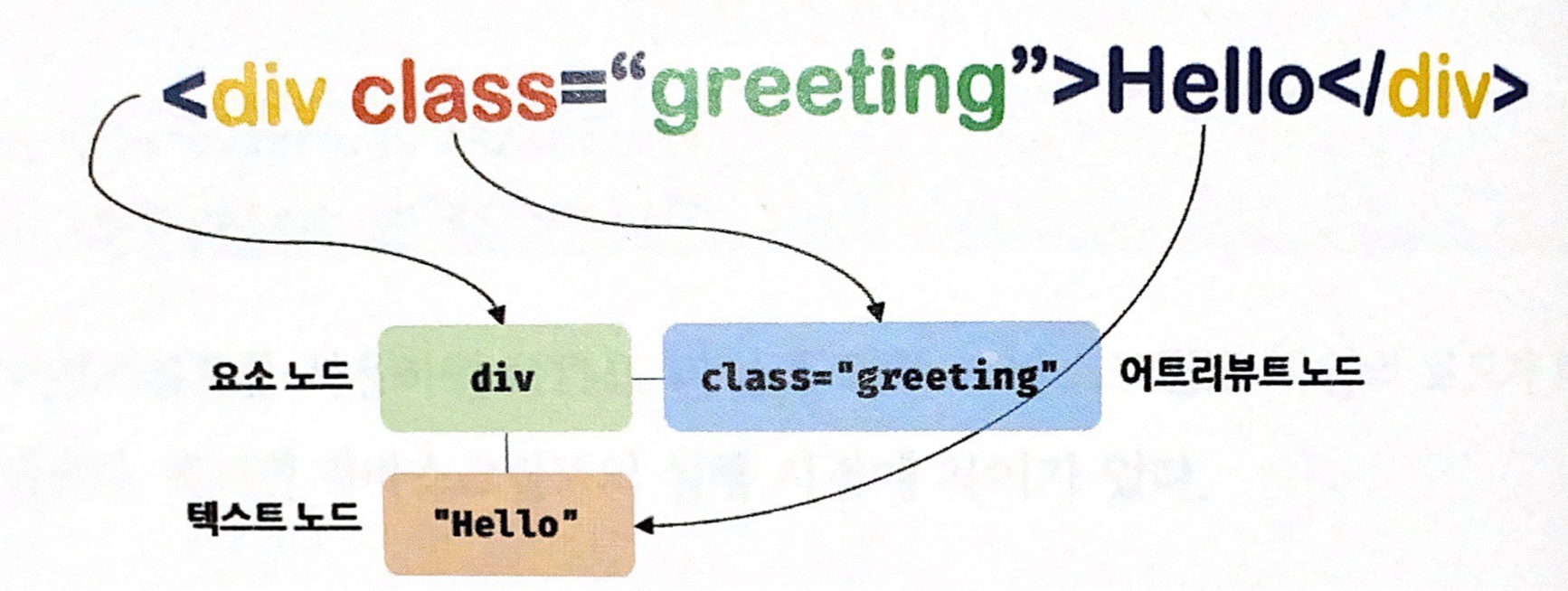 - HTML 문서를 파싱하여 브라우저가 이해할 수 있는 노드들로 구성된 트리 자료구조인 DOM(Document Object Model)을 생성한다. 즉, DOM은 HTML 문서를 파싱한 결과물이다. (바이트 -> 문자 -> 토큰 -> 노드 -> DOM)