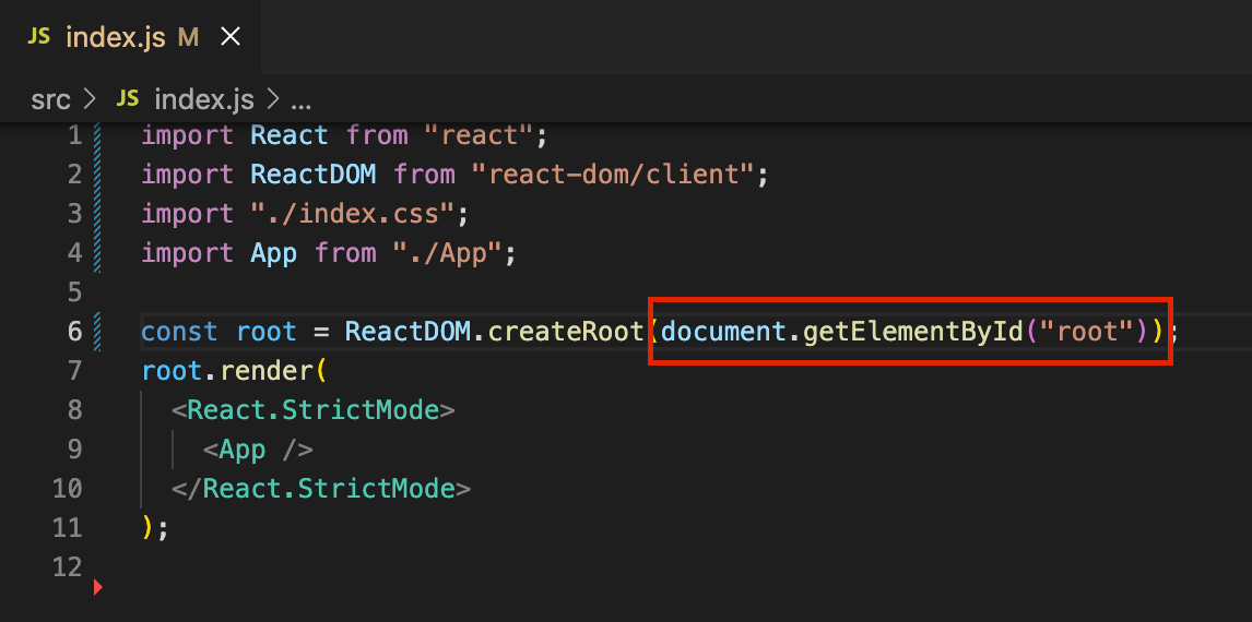 public/index.html 템플릿 파일에서 div element의 id가 root로 되어있고,