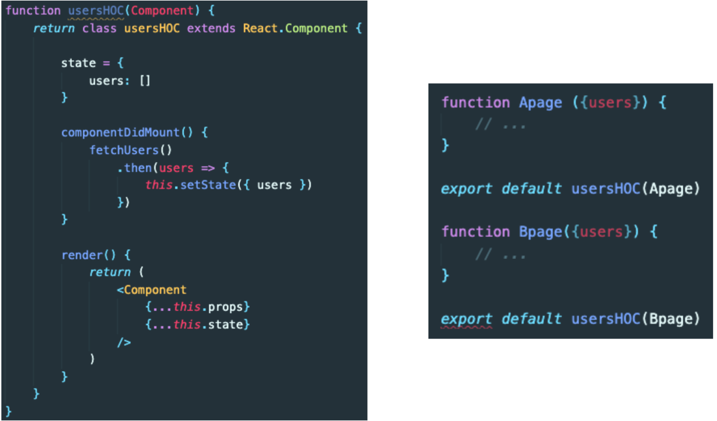 유저 리스트를 가져오는 공통적인 부분은 HOC 컴포넌트에 넣어주고 그 HOC 컴포넌트로 각각의 컴포넌트를 감싸주면 모든 컴포넌트에 따로 인증을 위한 부분은 넣어주지 않아도 된다.