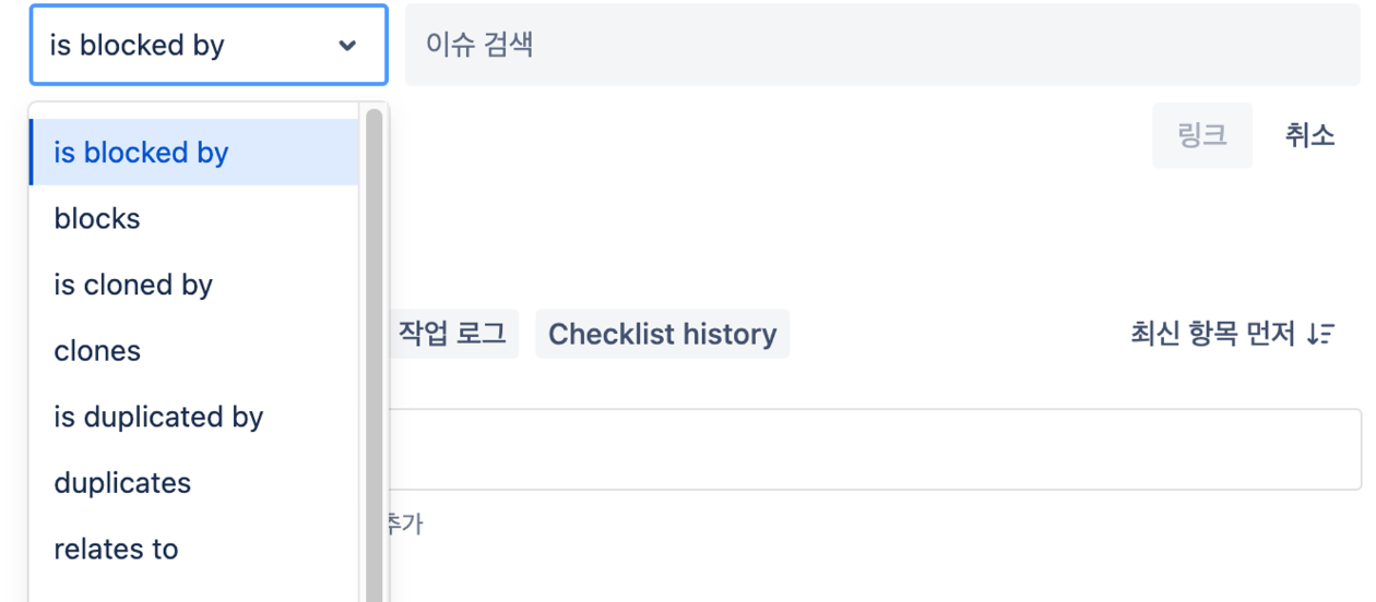 만약 A 이슈와 B 이슈가 있을 때 A 이슈가 반드시 먼저 끝나야 B 이슈를 작업할 수 있는 상황인 경우